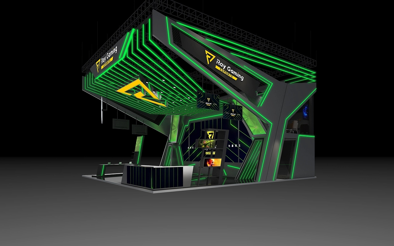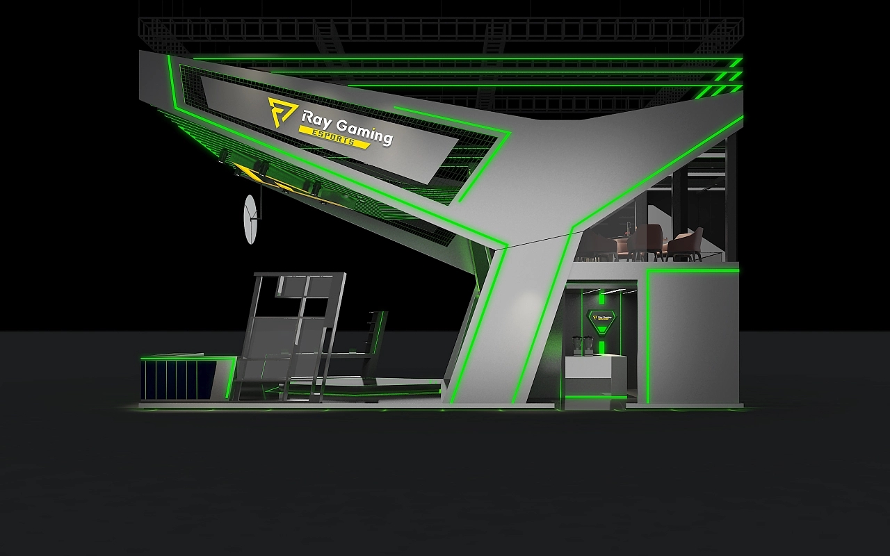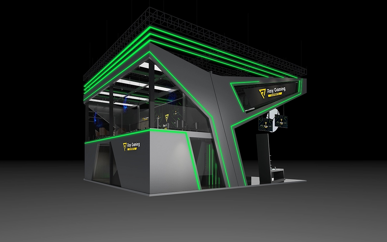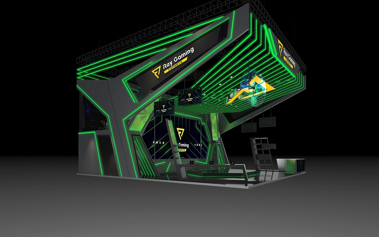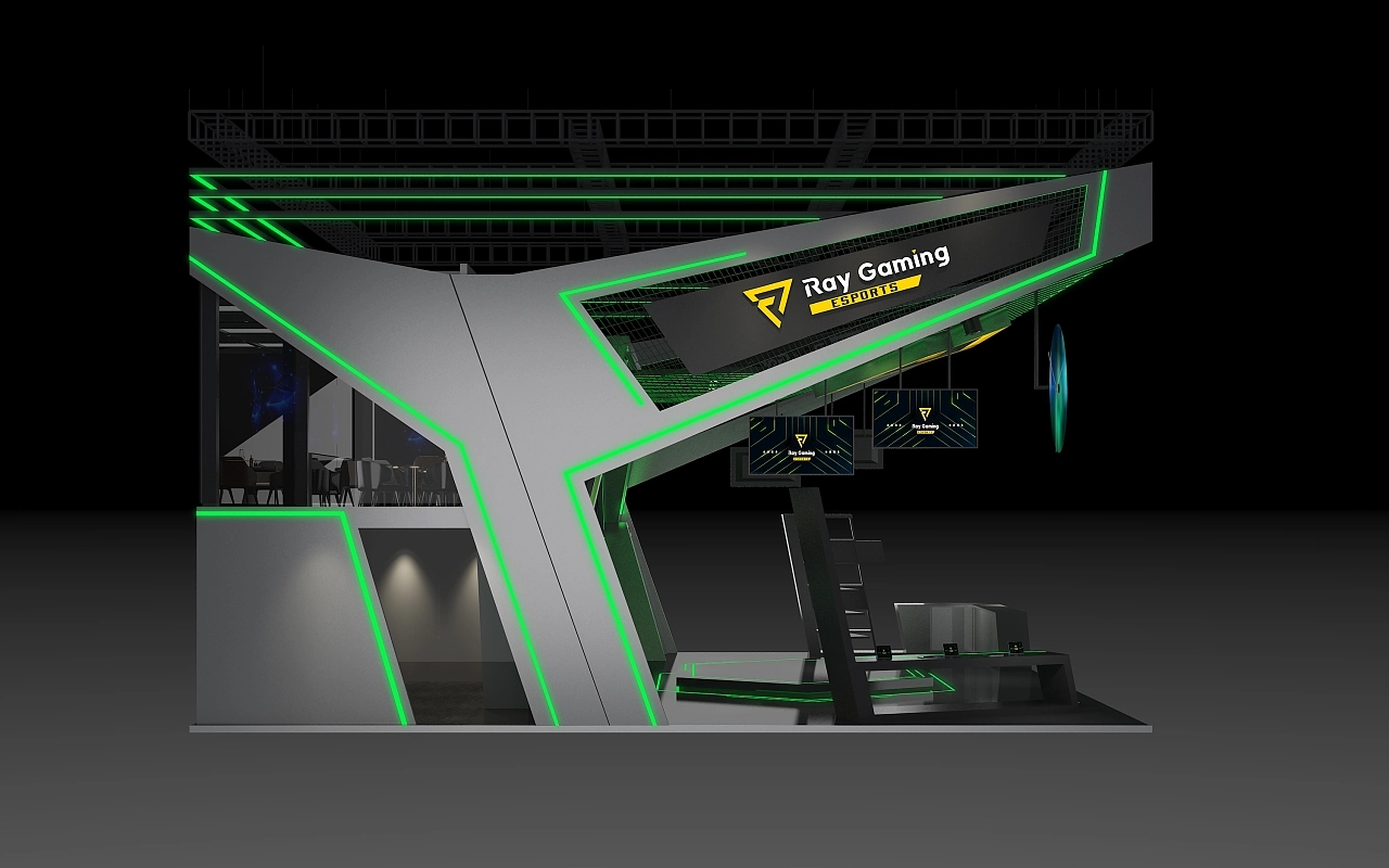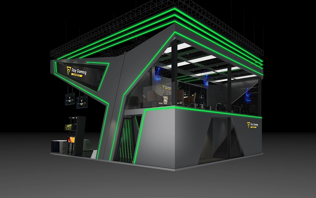 倫敦ICE科技展臺整個造型使用了大面積的黑色作為底色,以綠色的燈帶點亮展臺,科技感十足。一樓超大的舞臺部分可以安排節目表演,讓觀眾駐足欣賞,在二樓布置了客戶洽談區域,與一樓舞臺隔開,提供較安靜的洽談環境。展臺布置是展會成功的關鍵環節。它通過精心設計的布局、色彩搭配和道具陳列,全方位展示企業形象與產品特色。從搭建穩固的框架,到選擇合適的背景板材質與圖案,再到合理擺放展品,每一個細節都需精心考量。燈光的運用能突出展品亮點,營造氛圍;綠植與裝飾品的點綴則增添生機與美感。優質的展臺布置不僅能讓產品脫穎而出,還能吸引觀眾駐足,為品牌宣傳與產品推廣搭建起絕佳的舞臺,成為展會中一道亮麗的風景線。該展臺向參展觀眾展示了一種酷炫的科技風格,在展臺設計中將整體視覺重心都放在了展臺的上面,以較高的造型吸引更多遠處的客戶。