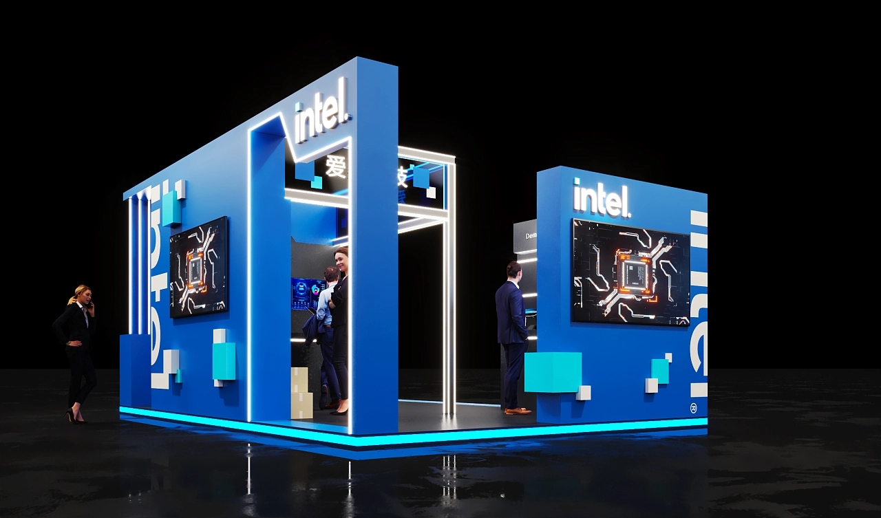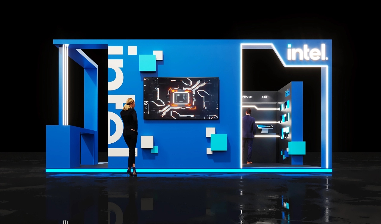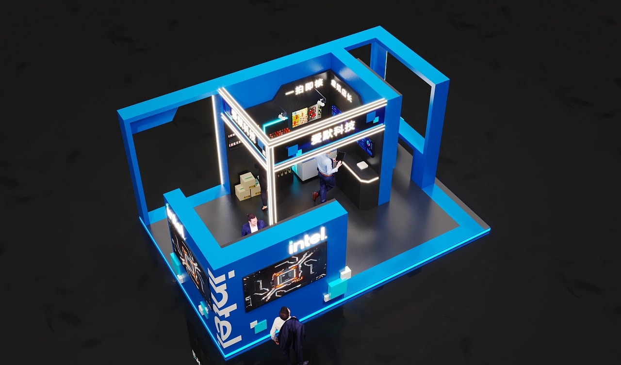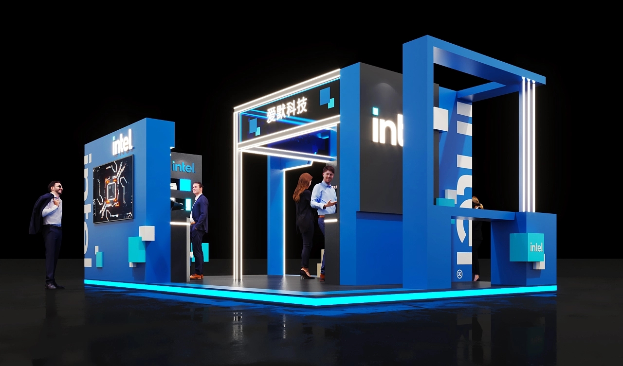 該展臺使用了藍色作為主色調,展臺搭建面積為36平的常規展臺,在面向會展人流的外墻上裝飾了芯片樣式的海報框,展示了該企業的產品特性,整個展臺設計十分簡約大方,僅通過不同幾何體的連接,仿佛用積木搭建了一個立體空間,營造了該展位的現代空間感。展會設計-航峰大型展會設計布置公司-高端展會設計公司,航峰會展公司是專注展臺搭建,展覽搭建,展示搭建,會展搭建等展覽設計搭建服務,連續多屆進博會展臺設計服務商,全球數百家會展主辦的指定搭建商,多年來為國內外五百強提供全球會展策劃,展覽設計,會展設計,展覽展示設計,展示設計,展會設計一站式服務。通過展覽制作,會展制作,展會制作,展臺制作,展示制作重塑展示,體驗,產業,運營四位一體新展覽之道,激發企業品牌創造力,實現品牌創意營銷全球化覆蓋。航峰展會設計公司是一家大型展會設計布置公司專業從事展會搭建,展會設計搭建,展會搭建設計一站式服務,質量過硬的展會設計布置為主辦搭建提供搭建解決方案。