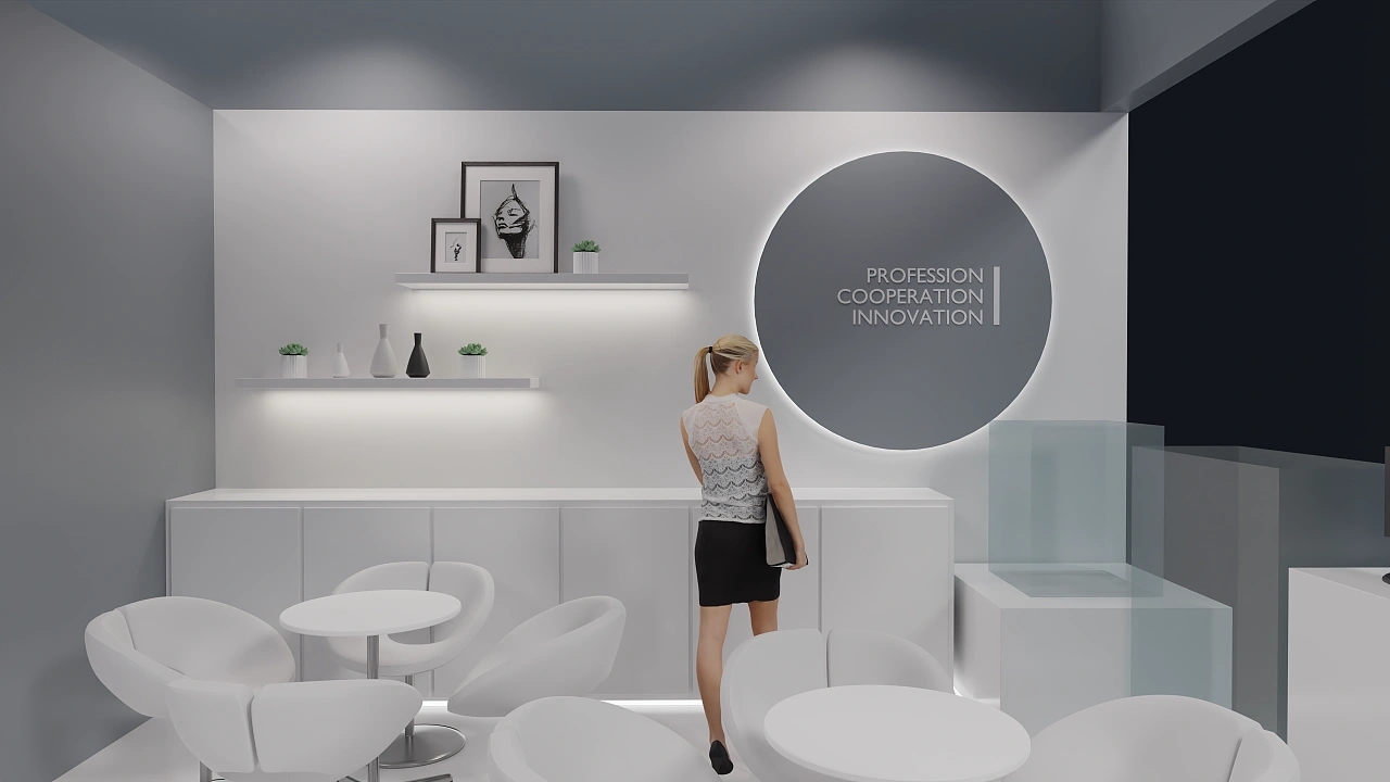 該展臺搭建面積為72平方米,整體色調使用了灰色作為主色調,搭配白色軟膜天花和藍色發光燈帶,打造展臺設計的科技感,整個展臺設計十分簡潔美觀,展示柜使用了透明材質,增加了產品的高級感,吧臺區和較私密的洽談區給了參展客戶舒適的體驗空間。廈門展覽公司-廈門展臺搭建,展臺設計公司,航峰會展公司是專注展臺搭建,展覽搭建,展示搭建,會展搭建等展覽設計搭建服務,連續多屆進博會展臺設計服務商,全球數百家會展主辦的指定搭建商,多年來為國內外五百強提供全球會展策劃,展覽設計,會展設計,展覽展示設計,展示設計,展會設計一站式服務。通過展覽制作,會展制作,展會制作,展臺制作,展示制作重塑展示,體驗,產業,運營四位一體新展覽之道,激發企業品牌創造力,實現品牌創意營銷全球化覆蓋。航峰廈門展覽公司是一家大型廈門展臺搭建專業從事展臺搭建等展臺設計服務,同時提供展臺設計搭建效果圖等展臺搭建效果圖,高端展臺搭建為企業提供搭建解決方案。