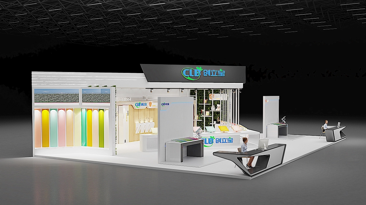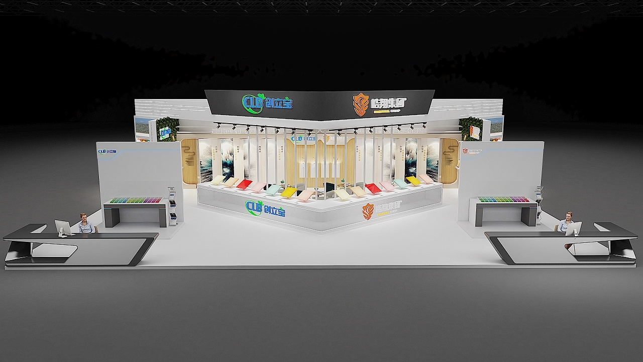 創立寶廣交會展臺設計搭建面積為180平方米,整體色彩以白色為主,以展臺中心線做對稱設計,展臺中間以三角形的造型將展示的產品更好的面向展會人流,左右對稱的設計使得展臺設計凸顯出整潔理性的空間感。展位立面上用展示產品布置搭建的墻面井然有序,既能起到裝飾作用,又能凸顯整潔有序的環境,使得展會觀眾能更好的挑選滿意的展品。專業展位設計公司提供展位搭建效果圖,航峰會展公司是專注展臺搭建,展覽搭建,展示搭建,會展搭建等展覽設計搭建服務,連續多屆進博會展臺設計服務商,全球數百家會展主辦的指定搭建商,多年來為國內外五百強提供全球會展策劃,展覽設計,會展設計,展覽展示設計,展示設計,展會設計一站式服務。通過展覽制作,會展制作,展會制作,展臺制作,展示制作重塑展示,體驗,產業,運營四位一體新展覽之道,激發企業品牌創造力,實現品牌創意營銷全球化覆蓋。航峰展位設計搭建公司是一家大型標準展位設計公司專業從事展位設計搭建等展位搭建設計服務,同時提標準展位搭建效果圖等展位設計效果圖,高端展位設計公司為企業提供搭建解決方案,展位設計搭建公司