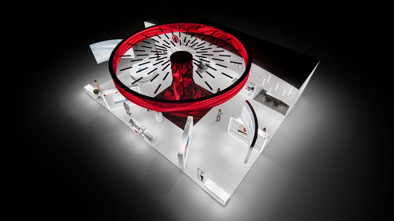 該展臺設計使用了一個紅黑色的巨大異性作為展臺的亮點,其使用了會變化的燈箱制作效果,黑色的背景中流動的紅色絲帶造型獨特,吸引來往的客戶的注意。整個展臺設計搭建十分簡潔大方,結合了中國銀行企業logo的顏色作為色彩搭配的主要色,彩優化了參展觀眾的視覺批了。展臺搭建-專業展臺設計搭建公司,航峰會展公司是專注展臺搭建,展覽搭建,展示搭建,會展搭建等展覽設計搭建服務,連續多屆進博會展臺設計服務商,全球數百家會展主辦的指定搭建商,多年來為國內外五百強提供全球會展策劃,展覽設計,會展設計,展覽展示設計,展示設計,展會設計一站式服務。通過展覽制作,會展制作,展會制作,展臺制作,展示制作重塑展示,體驗,產業,運營四位一體新展覽之道,激發企業品牌創造力,實現品牌創意營銷全球化覆蓋。航峰展臺設計搭建公司是一家大型標準展臺設計公司專業從事展臺設計搭建等展臺搭建設計服務,同時提標準展臺搭建效果圖等展臺設計效果圖,高端展臺設計公司為企業提供搭建解決方案。