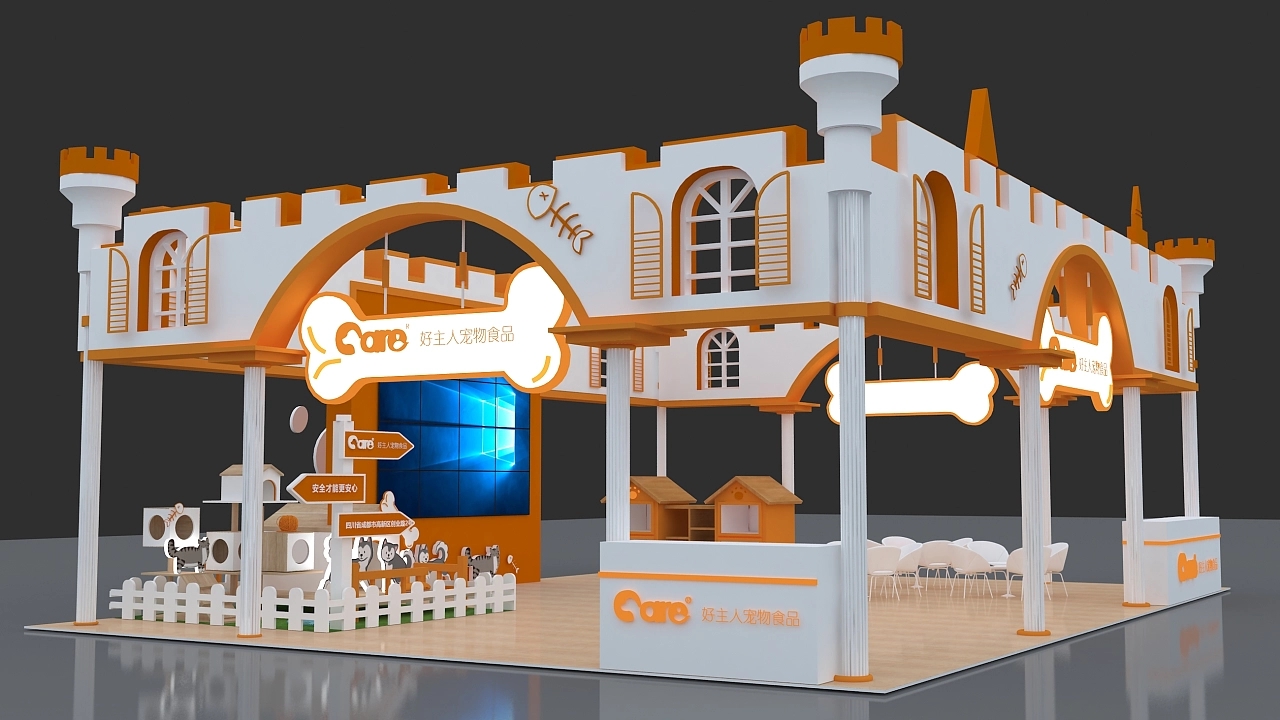 該展臺設計搭建圍繞寵物這一主題進行展臺設計,打造了一個寵物城堡造型的特色展臺,橙色和白色的色彩搭配給這個展臺帶來活潑可愛的空間氛圍,整個展臺造型十分獨特,能吸引來往的展會人流的關注,在輕松歡快、開放溫馨的環境中了解展品的優勢,促進產品銷售額的成交率。成都展覽設計-成都展覽展示設計公司-成都展覽設計公司,航峰會展公司是專注展臺搭建,展覽搭建,展示搭建,會展搭建等展覽設計搭建服務,連續多屆進博會展臺設計服務商,全球數百家會展主辦的指定搭建商,多年來為國內外五百強提供全球會展策劃,展覽設計,會展設計,展覽展示設計,展示設計,展會設計一站式服務。通過展覽制作,會展制作,展會制作,展臺制作,展示制作重塑展示,體驗,產業,運營四位一體新展覽之道,激發企業品牌創造力,實現品牌創意營銷全球化覆蓋。航峰成都展覽設計公司是一家大型成都展覽展示設計公司專業從事展覽設計等展覽展示設計服務,同時提成都展覽設計制作公司效果圖等創意展覽設計效果圖,高端成都展覽展示設計公司為企業提供搭建解決方案。