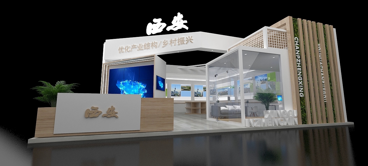 該展臺設計為西安城市展臺,在展臺搭建材料上使用了木質(zhì)結構,展臺整體采用直線條的邊角處理,使用不同方形結構的疊加或者交錯擺放,打造展臺設計的立體空間感,增強了展臺的視覺辨識度。展臺空間內(nèi)部大量的圖文詳細的介紹了西安城市的魅力,展臺接待區(qū)旁邊還有用透明玻璃的直播間,方便來往的觀眾觀看現(xiàn)場直播,又能起到一定的隔音作用,有利于直播間收音。展會搭建-航峰大型展會搭建-高端展會搭建公司,航峰會展公司是專注展臺搭建,展覽搭建,展示搭建,會展搭建等展覽設計搭建服務,連續(xù)多屆進博會展臺設計服務商,全球數(shù)百家會展主辦的指定搭建商,多年來為國內(nèi)外五百強提供全球會展策劃,展覽設計,會展設計,展覽展示設計,展示設計,展會設計一站式服務。通過展覽制作,會展制作,展會制作,展臺制作,展示制作重塑展示,體驗,產(chǎn)業(yè),運營四位一體新展覽之道,激發(fā)企業(yè)品牌創(chuàng)造力,實現(xiàn)品牌創(chuàng)意營銷全球化覆蓋。航峰展會搭建公司是一家大型展會搭建專業(yè)從事展會搭建等會展搭建服務,同時提供展會搭建效果圖等會展搭建設計圖片,高端展會搭建為企業(yè)提供搭建解決方案。