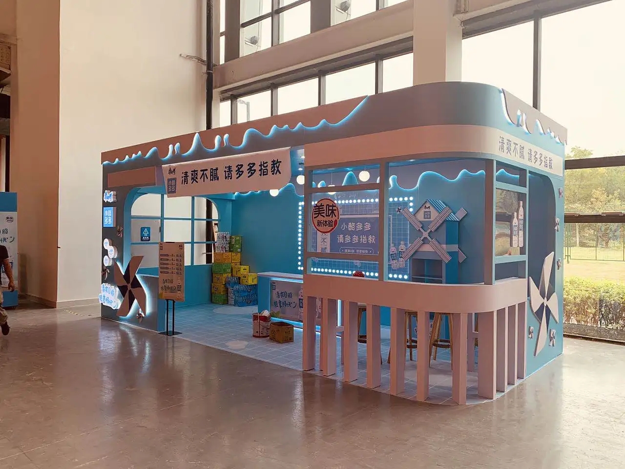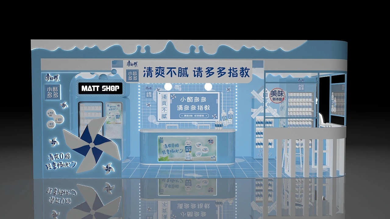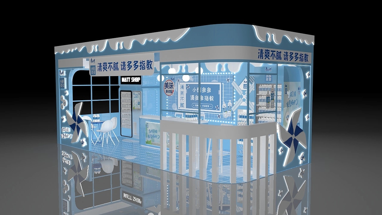 該展臺設計搭建采用了藍白色的色調進行色彩搭配,整個展臺搭建面積為48平方米,該展臺設計結合了企業產品的特性,在展臺頂部設計了乳酪狀的邊緣,展臺裝修還采用了風車,凸顯產品清爽的特點,整個展臺設計清新自然,有利于吸引來往的會展人群,提高產品的成交量。會展策劃公司-專業會展策劃公司-會展策劃與設計公司,航峰會展公司是專注展臺搭建,展覽搭建,展示搭建,會展搭建等展覽設計搭建服務,連續多屆廣交會展臺設計服務商,全球數百家會展主辦的指定搭建商,多年來為國內外五百強提供全球會展策劃,展覽設計,會展設計,展覽展示設計,展示設計,展會設計一站式服務。通過展覽制作,會展制作,展會制作,展臺制作,展示制作重塑展示,體驗,產業,運營四位一體新展覽之道,激發企業品牌創造力,實現品牌創意營銷全球化覆蓋。航峰會展策劃公司是一家專業從事會展策劃與設計等會展策劃服務,同時提會展策劃效果圖等會展策劃與設計效果圖,高端會展策劃公司為企業提供搭建解決方案。